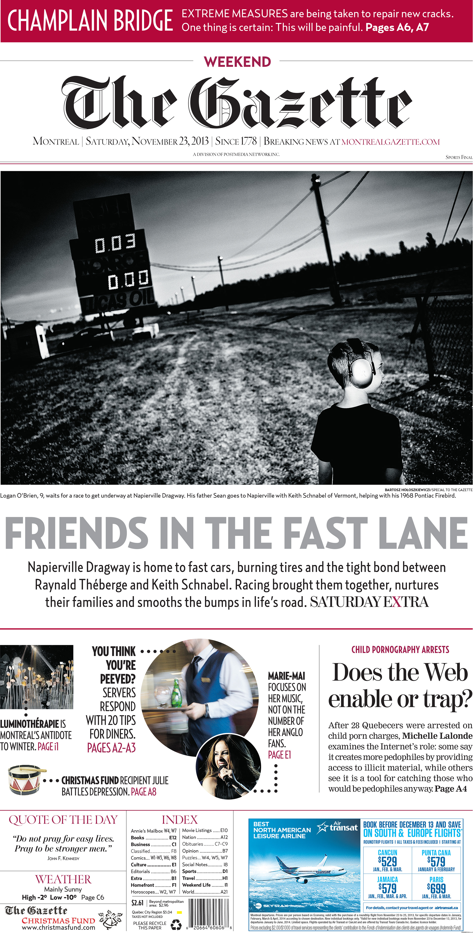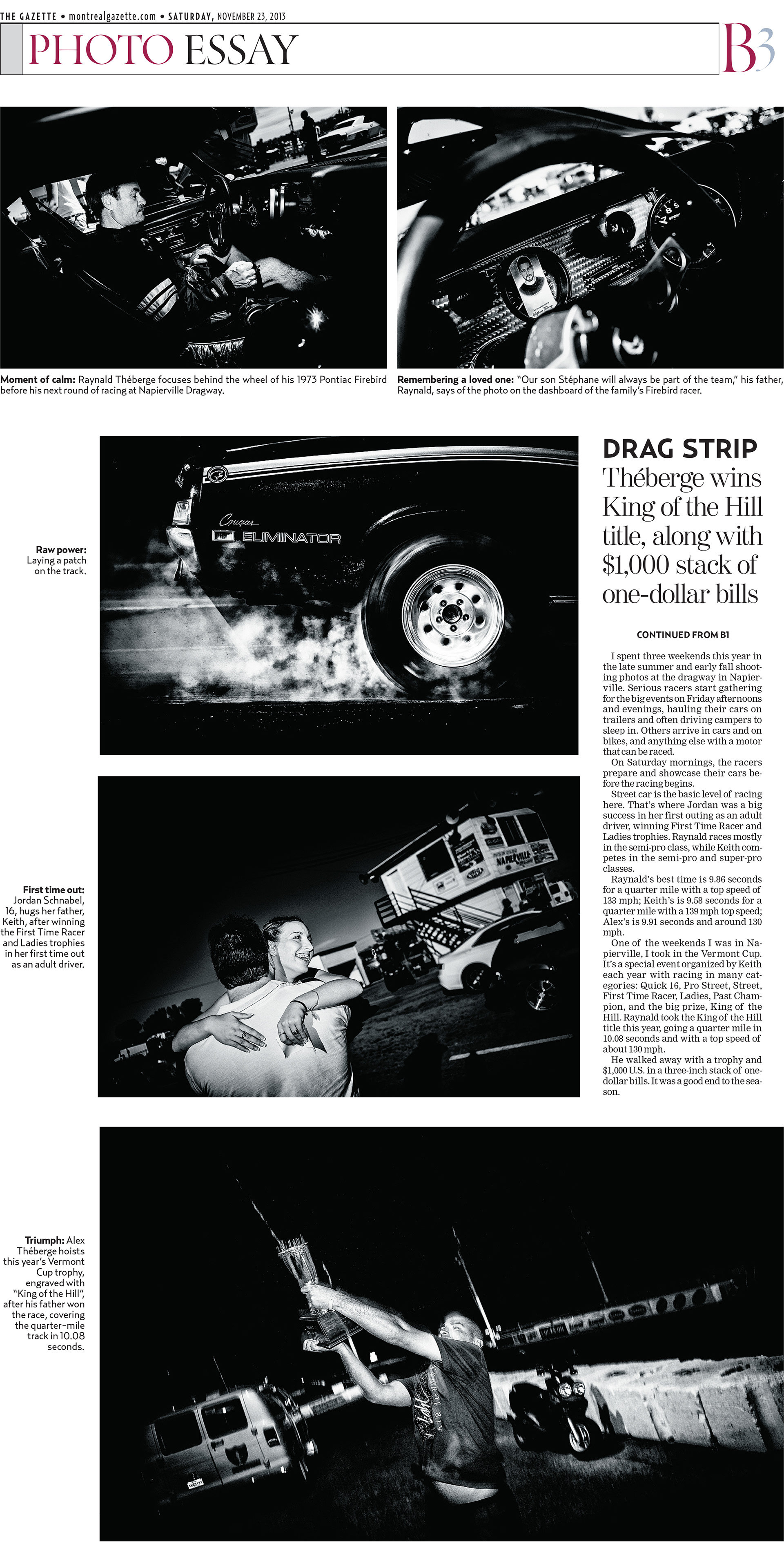 Friend in the fast lane 2013. Front page and photo essey for the gazette Montreal.